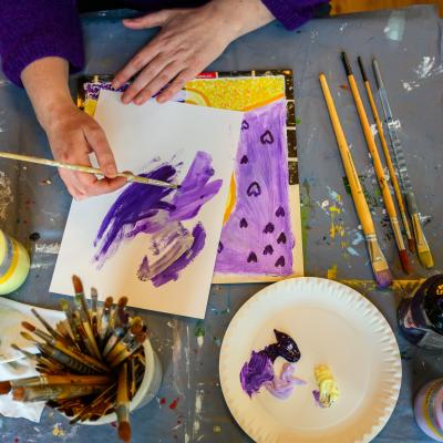 'Ik vond het schilderen heel leuk en rustgevend. Het waren leuke opdrachten, ze zorgden voor een beetje verwerking. De cursus bestond uit twee delen van een heel andere soort. De eerste helft, het schilderen van de LP-hoes, had een wat vrijere opzet. Bij de tweede helft, het schrijven en de collage, was je juist wat preciezer en gedetailleerder aan het werken. Er was fijne begeleiding, met relaxte docenten en vrijwilligers erbij. De docenten waren geïnteresseerd, oprecht en gaven goede aanwijzingen.'